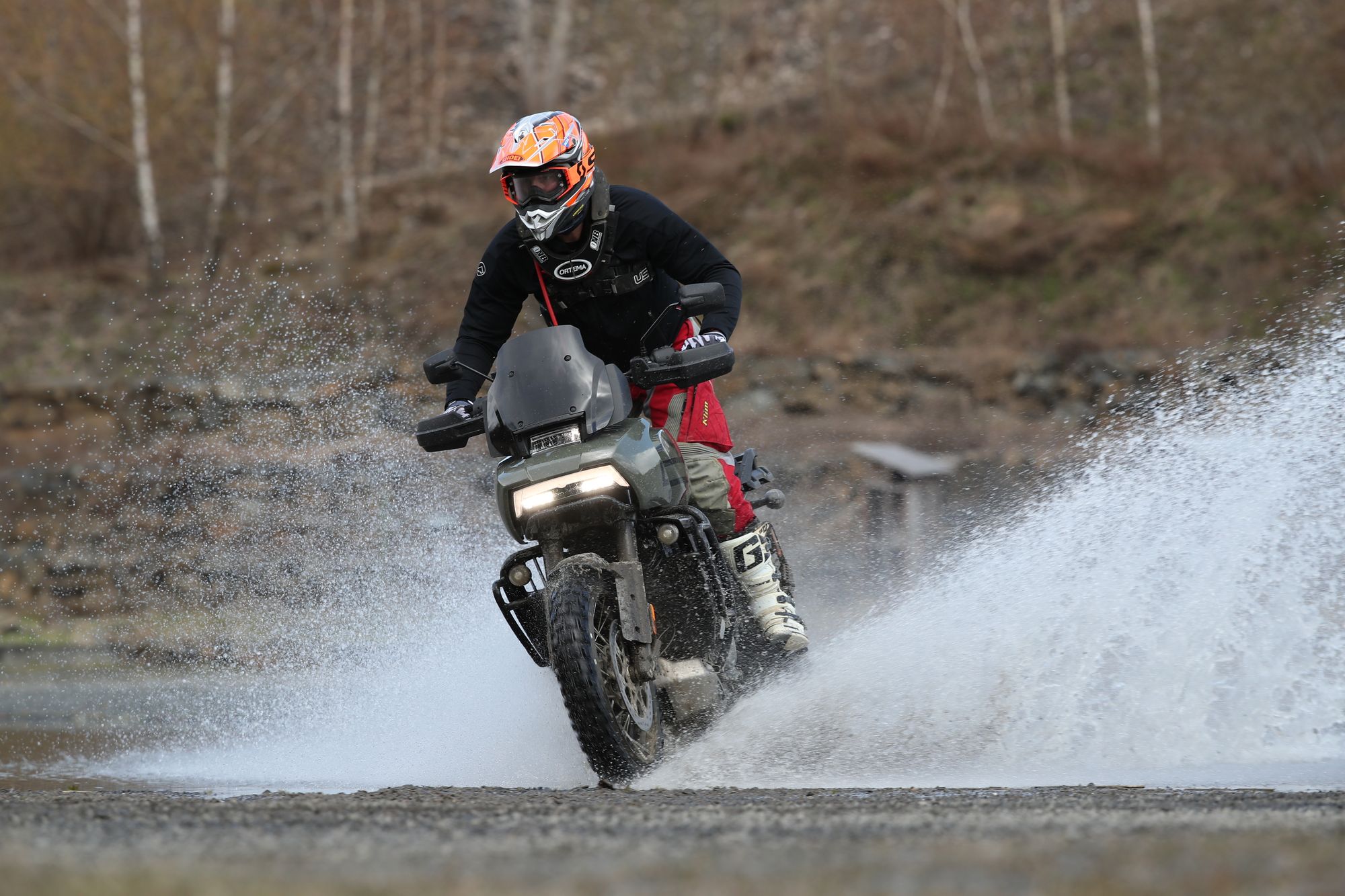 An leichte Sportenduros gewöhnt, hatte ich Bedenken, wie sich dieses Dickschiff im Gelände bändigen lässt. Ich wurde positiv überrascht: Die elektronischen Helferlein der zwei Offroad-Fahrmodi sorgen mit Traktionskontrolle und ABS für Selbstvertrauen und eine steile Lern- und Spasskurve. Das Adventurebike ist gut ausbalanciert und wirkt leichter, als die Zahlen auf dem Papier vermuten lassen. Das Deaktivieren von ABS und Traktionskontrolle brachte mir zusätzlichen Spass: Driften wird hierdurch für geübtere Fahrerinnen und Fahrer möglich.